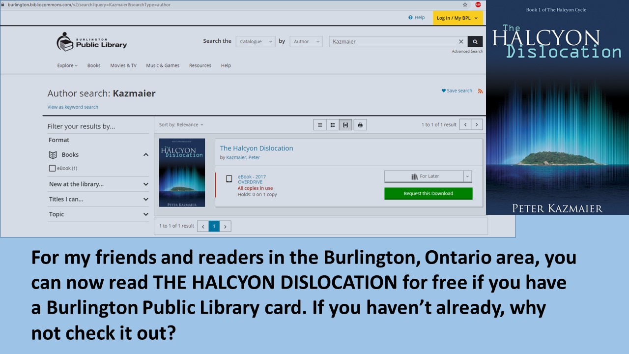 THE HALCYON DISLOCATION Can Now be Borrowed at the Burlington Public Library (Ontario)